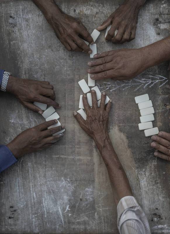 In one of the popular markets in the city of Aden, the wrinkles of the hands that tell many memories, and the game of dominoes that they do not stop playing every day and every day, the memories increase and the wrinkles increase.