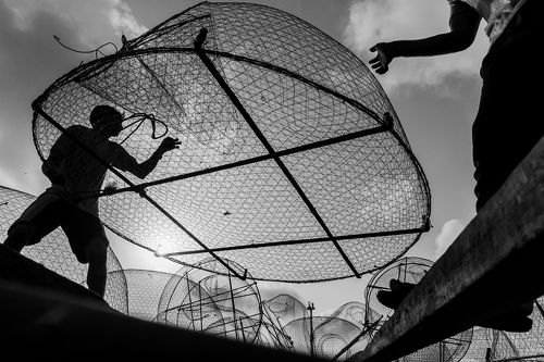 Capturing the essence of the hardworking fishermen and their daily routine, this photo series portrays the intricacies of their trade. Each photograph captures the fishermen as they load their fishing nets onto their boats, showcasing the physical effort, teamwork, and determination required for a successful catch. The nets, heavy with the bounty of the sea, are meticulously laid out and carefully loaded onto the boat, revealing the fishermen's expertise in their craft.