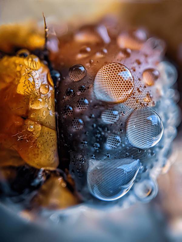 This is the extreme macro photograph of Dragonfly eye, The following photograph was taken during rain, Dragonfly loves to be in Rain, once the rain is over, they use their limbs to clean the water, This photograph was taken with Macro lens attached to smartphone under natural Light , its a single shot no manipulation done while processing.